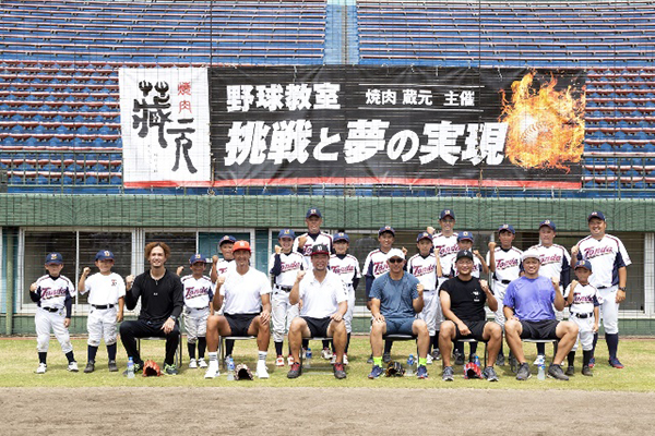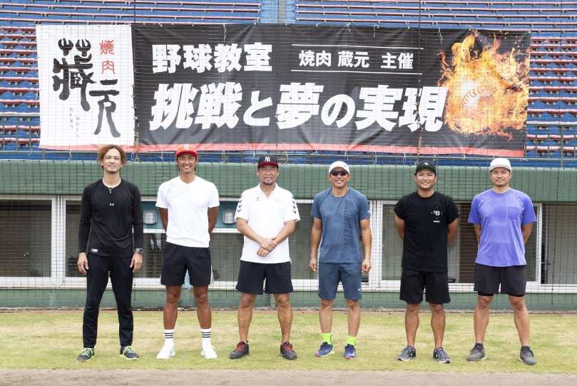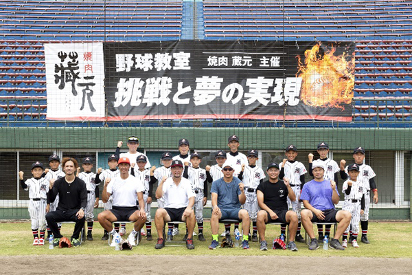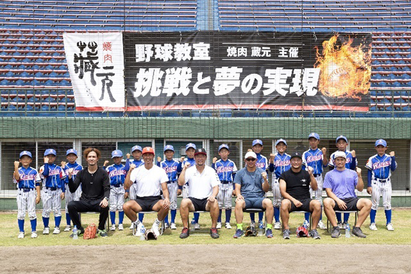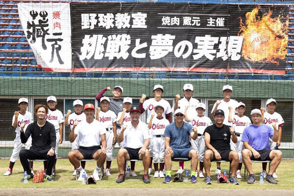 日ごろから焼肉 蔵元をご愛顧いただいている元福岡ソフトバンクホークスの松中信彦さん率いる斉藤和巳さん、新垣渚さん、川崎宗則さん、攝津正さん、吉村裕基さんらレジェンドが創業の地である山口県周南エリアの周南市野球場(津田恒実メモリアルスタジアム)に集結し、夢の野球教室が実現しました。