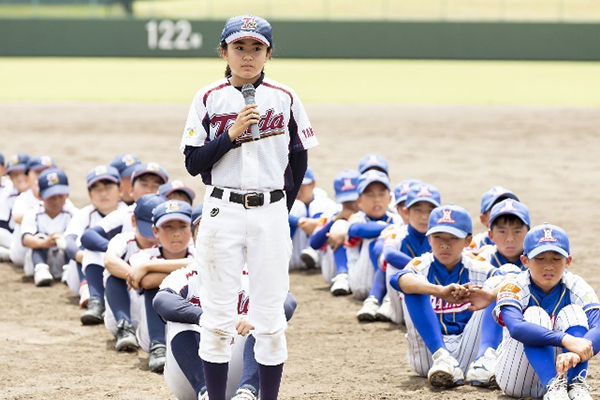 野球技術や心構えを学んだ子どもたちからは「すごく楽しかったです。今日習った打ち方や守り方投げ方を発揮できるよう努力していきたいです」「アドバイスを直接聞けて参考になりました」などの感想があがりました。