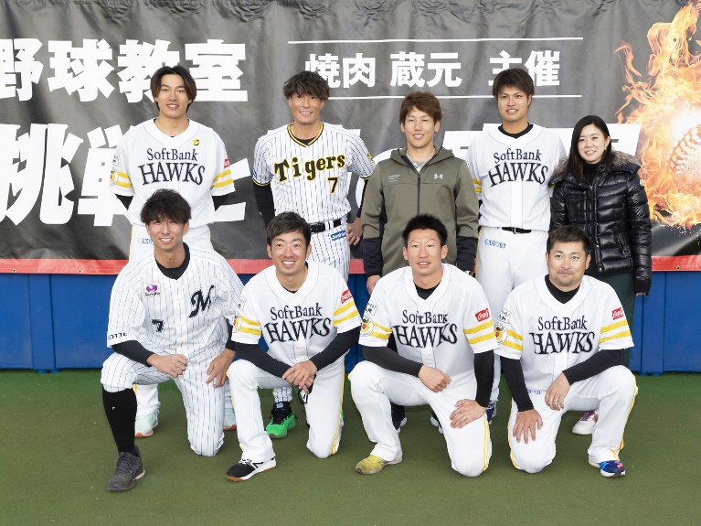 特別講師として上段左から柳田悠岐選手、糸井嘉男選手、吉田正尚選手、甲斐野央選手、下段:福田秀平選手、嘉弥真新也選手、真砂勇介選手、森唯斗選手。