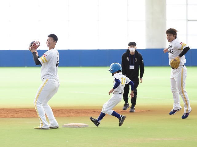 プロ野球選手と共に練習・対戦をした子どもたちは「一緒に試合ができて、すごくいい経験になりました」「体が大きくて迫力があるし、スイングスピードも速くて驚きました」「すごく楽しかったです」と笑顔で話してくれました。
