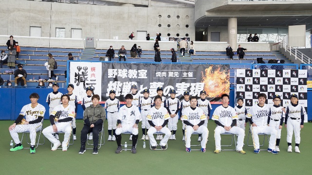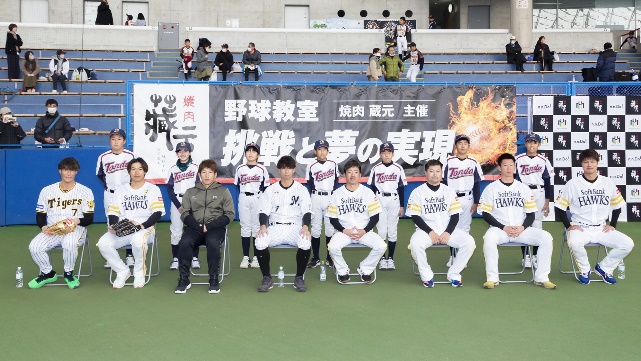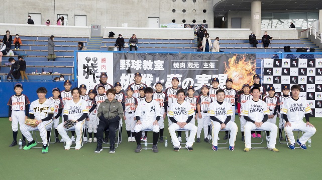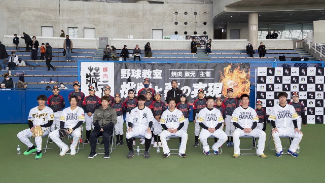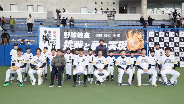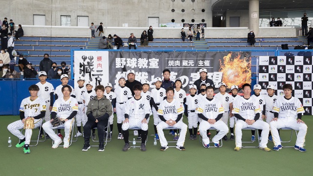 2022年8月に続き、2回目となる野球教室を12月に山口市(山口きらら博記念公園 やまぐち富士商ドーム)で開催しました。日ごろから焼肉 蔵元を懇意にしていただいている福岡ソフトバンクホークス柳田悠岐選手にご協力を依頼。森唯斗選手、甲斐野央選手、嘉弥真新也選手、真砂勇介選手(福岡ソフトバンクホークス)、吉田正尚選手(ボストン・レッドソックス:入団発表)、福田秀平選手(千葉ロッテマリーンズ)、糸井嘉男選手(阪神タイガース)にもお声がけいただき、夢の野球教室の開催に至りました。(所属チームは当時)