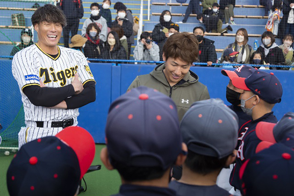 糸井嘉男選手:これだけ豪華なメンバーが集まる野球教室はなかなかないと思います。子どもたちもキラキラした目で話を聞いてくれたので、とても有意義な時間になりました。自分自身、久しぶりにユニフォームに袖を通せてテンションも上がり、とても楽しめました。山口県に初めて来ましたが、空気がおいしくていいところ。また野球教室で訪れたいです。